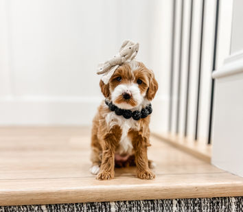 This is a first time pairing, Queeny is a daugter of Maple and Roscoe our most popular Cavpoo pair she is full sisters to the famous Chloe from @ourfauxfarmhouse. We have chosen an amazing F1 Cavapoo stud to pair her with. This litter is highly anticipated we cannot wait to see what they produce!